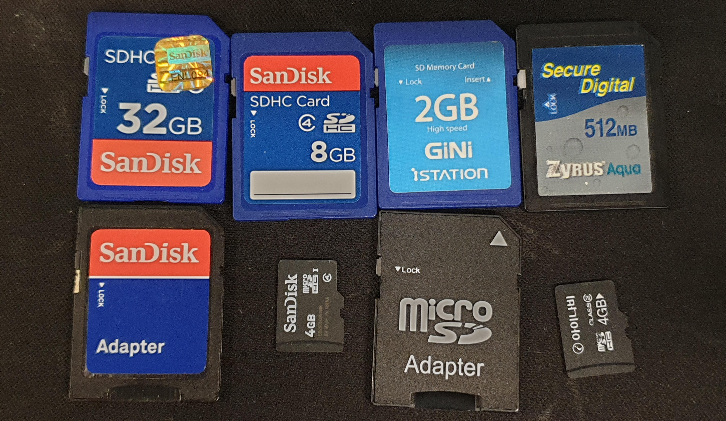 카메라에서 사용하던 SD카드들과, 네비게이션에서 썼던 SD카드.