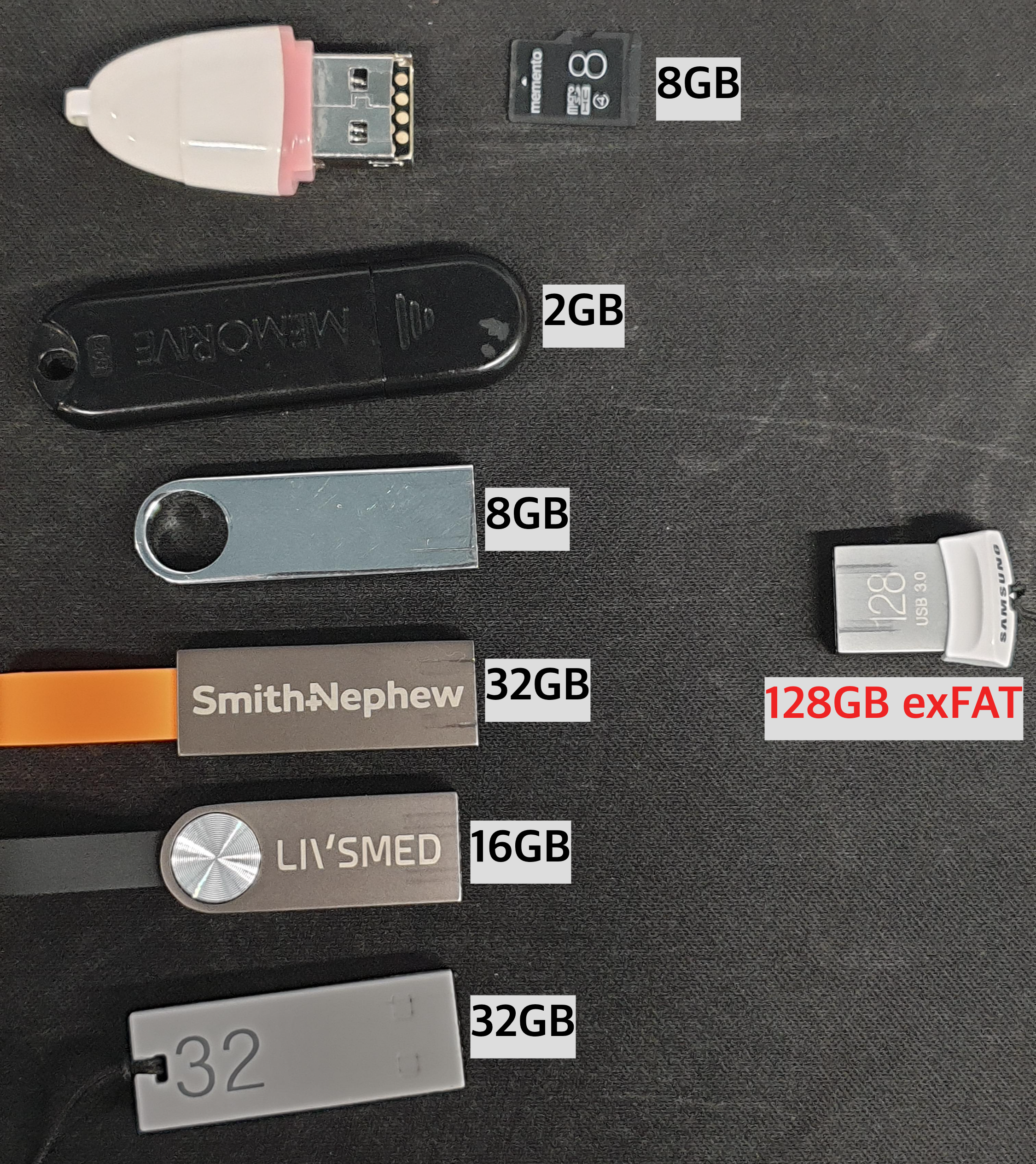 USB 스틱인줄알았는데, MicroSD 카드 리더였던 녀석을 포함해서 32GB 이하 용량의 USB들은 모두 문제없이 인식되고,